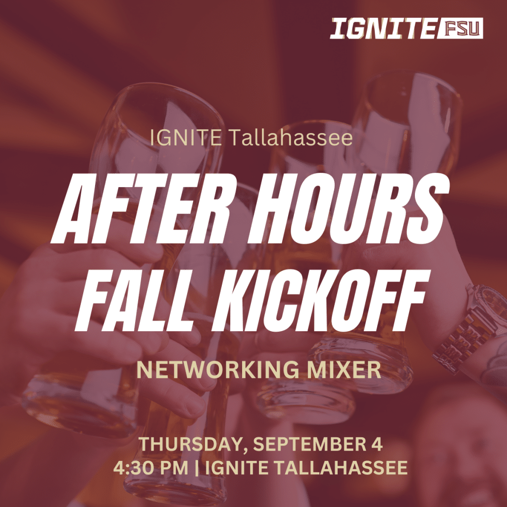 Ready to Kick Off the Fall? Join us for IGNITE After Hours—a networking mixer where Tallahassee’s brightest minds in business, entrepreneurship, science, and tech come together to connect, collaborate, and unwind. Stop by IGNITE Tallahassee for great conversations, great company, and a drink (or two) on us. Bring your business cards—and your hottest takes on how the football […]
