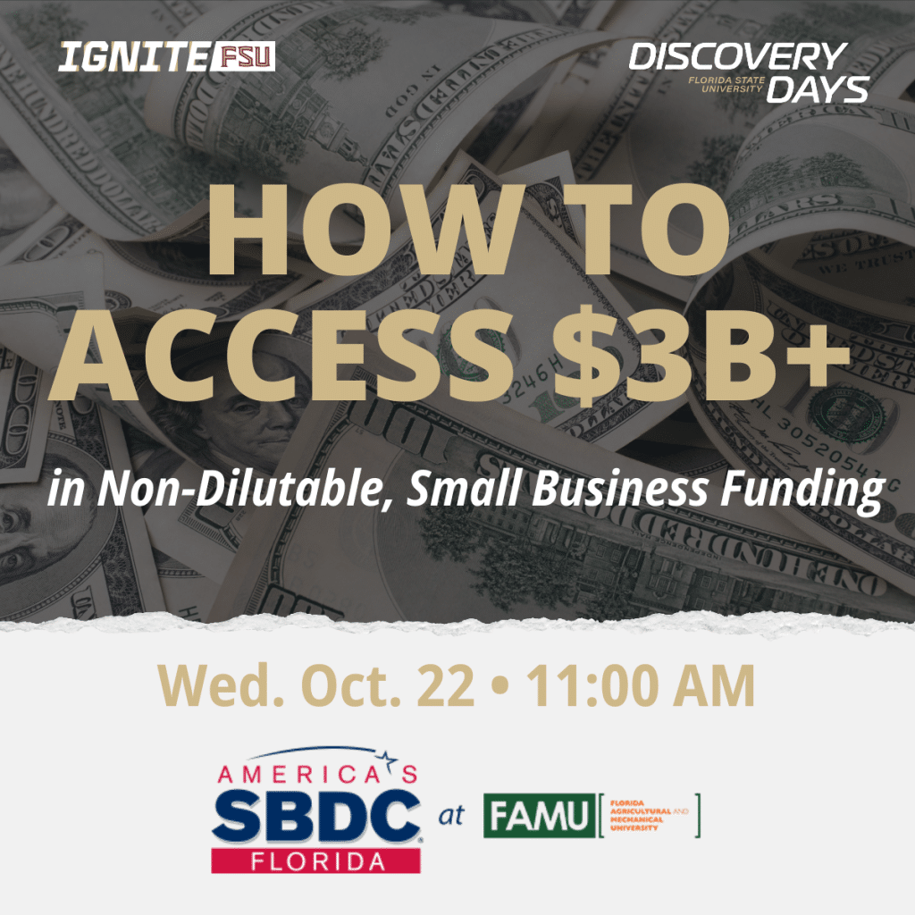 Learn how SBIR & STTR helps fund innovative research and how to access over $3 billion in non-dilutable funding. Hosted at Florida Small Business Development Center (SDBC) at Florida A&M University This presentation provides a basic introduction to the purpose, eligibility requirements and structure of the Small Business Innovation Research (SBIR) and the Small business […]