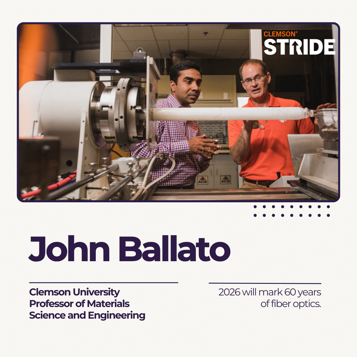 Clemson University- STRIDE’s Principal Investigator John Ballato has dedicated over 30 years to the field of fiber optics and was recently featured in Clemson University News to share his expertise on the technology.